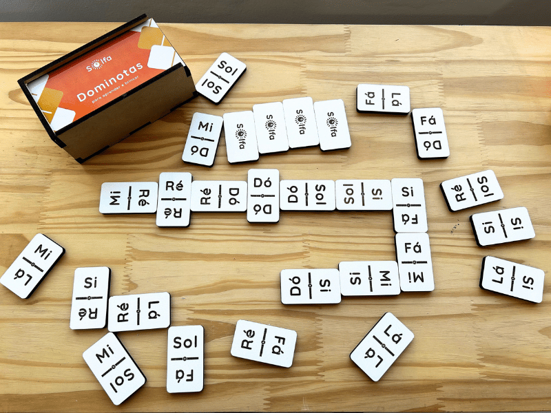 Aprender e brincar! Com o Dominotas a musicalização terá diversão garantida. Esse jogo pode ser utilizado no aprendizado de notas musicais, escalas, intervalos e muito mais que a sua imaginação desejar. No manual você encontra algumas sugestões de como jogar.